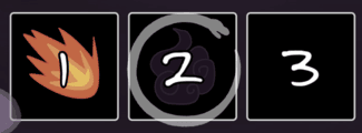 Press 1, 2, 3, 4, 5 to select the skill for the next cycle. Those are your skill icons. 1 is selected, 2 will become selected on the cycle, 3 is unavailable yet.
